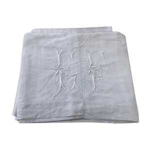 Drap ancien brodé monogramme