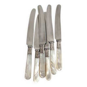 10 anciens couteaux en nacre et métal argenté
