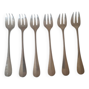 12 fourchettes à huitres ou à dessert en métal argenté modèle Art Déco