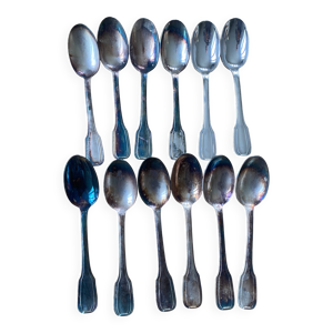 12 grandes cuillères 12 fourchettes métal argenté modèle filet de style Lou