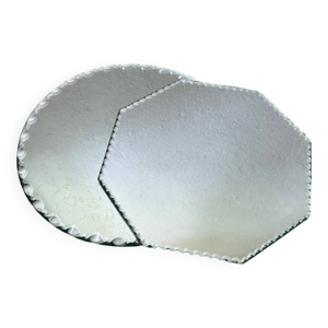 2 anciens plateaux de service rond poignées bronze et finition chromée Art