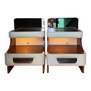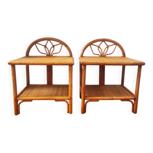 2 bouts de canape vintage 1980 rectangulaires 2 plateaux translucides tube rond