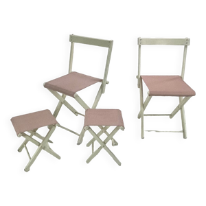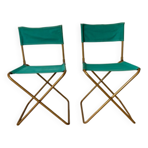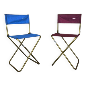 2 chaises de camping en cuir vintage à motif assorti avec trépied