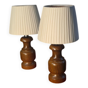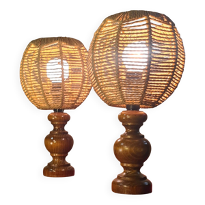 2 lampes style scandinave de chevet bois massif et abat jour raffia 40