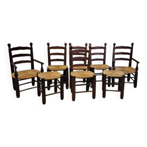 4 chaises Charles Dudouyt paillées design 40-50-60