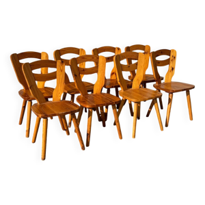 4 chaises en pin de style brutaliste, Ate van APELDOORN, années 1970
