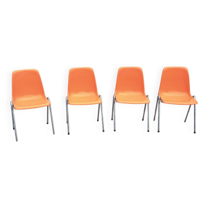5 chaises en plastique orange Robin Day pour Hille