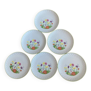 6 assiettes à dessert vintage faïence - Décor fleuri