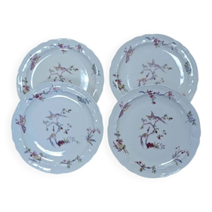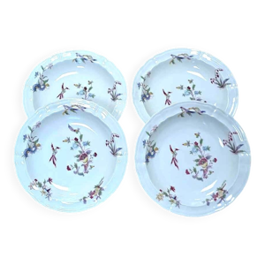 6 assiettes Bernardaud Limoges Borghese décor jaune fruits et ruban bleu