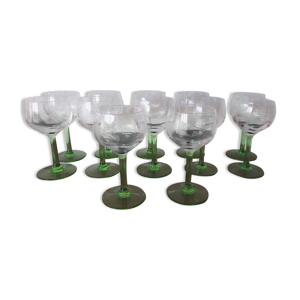 6 Verres à liqueur pied rond pyramidal Ouralin vert