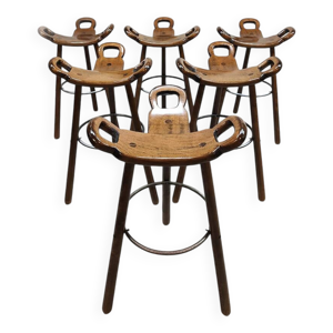 8 tabourets hauts en bois, Espagne 1960