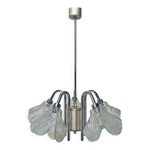 Abat-jour verre bleu , suspension art déco, lampe de plafond vintage