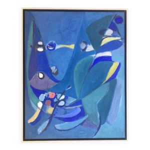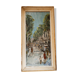 Acrylique sur panneau cadre bois doré ovale campagne bohème