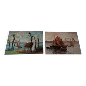 Adorable Paire de tableaux oiseaux à relief Chinois Asiatique Réalisés en Plume Vintage