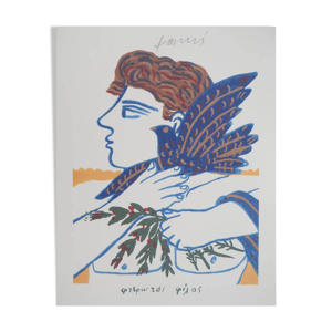 Alekos FASSIANOS : Homme élégant à vélo, Lithographie signée