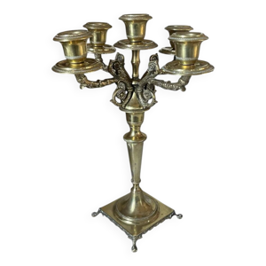 Ancien chandelier bougeoir 1,3 kg cristal de bohème ancien verre antique
