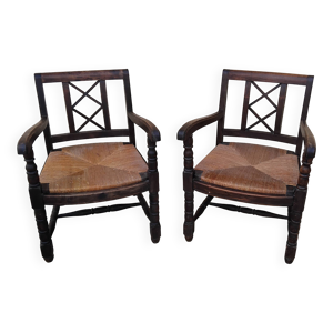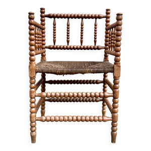 Ancien fauteuil paillé d angle de coin en bois tourné
