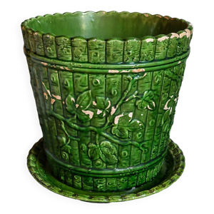 Ancien Pot de fleur jardinière cache pot terre cuite vernissée