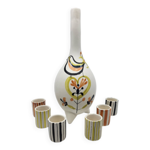 Ancien Service Bouteille + 6 Gobelets Grès DIGOIN France Vintage