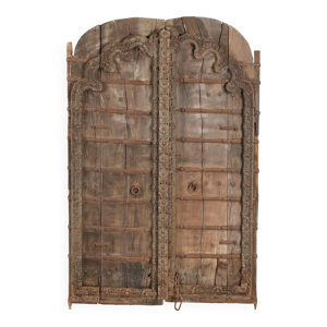 Ancienne porte indienne en vieux teck pièce et patine d'origine