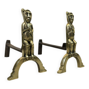 Anton Prinner, paire de chenets Shaman en bronze doré, monogrammé, 1930