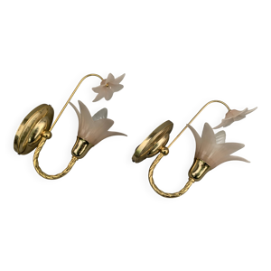Applique murale col de cygne vintage en laiton et tulipe opaline fleur