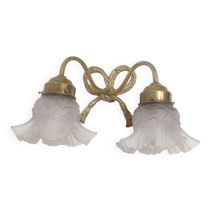 Applique murale en bronze et tulipe en verre opaque 1900