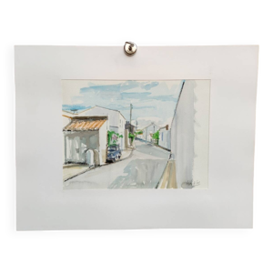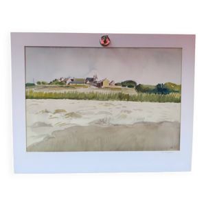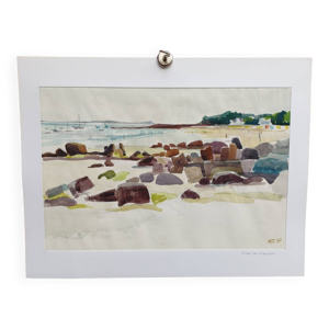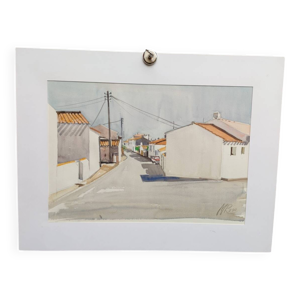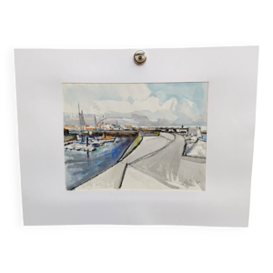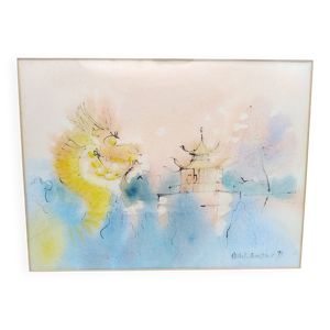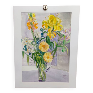 Aquarelle par Michel Roubille, bouquet de fleurs 1988.