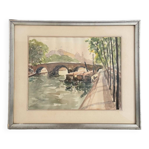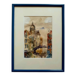Aquarelle Venise le Pont des Soupirs 19ème siècle