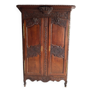 Armoire ancienne Louis XIII en noyer massif avec ses portes sculptées