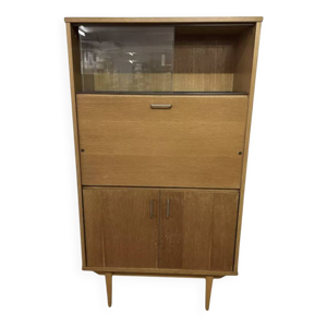 Armoire secrétaire rideaux bois rangement volet vintage années 1940