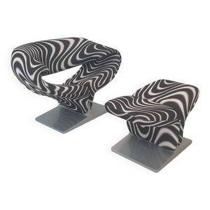 Artifort Ribbon chair van Pierre Paulin + Ottoman, stof Pierre Frey