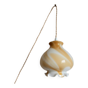 Baladeuse lampe globe tulipe verre étoilé support laiton