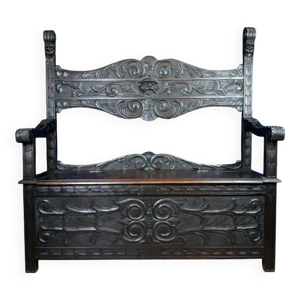 Banc coffre de style renaissance en frêne sculpté XIX siècle