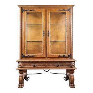 Bibliothèque néo-Renaissance ancienne, vitrine, noyer