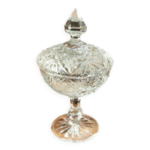 Bonbonnière ancienne en cristal et verre dépoli pied formant un poisson