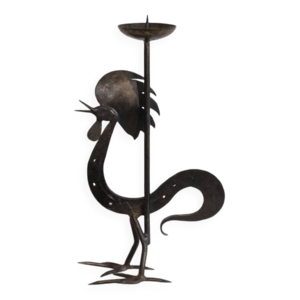 Bougeoir coq en fer forgé, dans le goût de Marolles