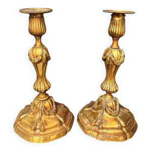 Bougeoir flambeau XVIIIe Régence en bronze argenté à décor floral ciselé