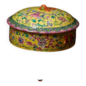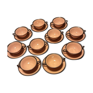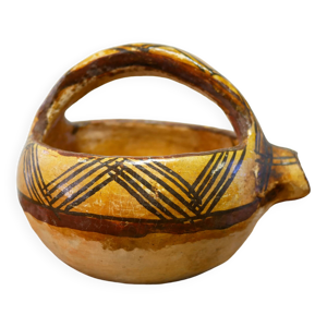 Bouillon sur piédouche faïence polychrome à décor de jetés de fleurs...