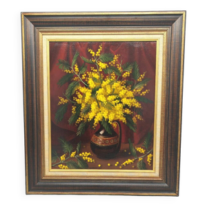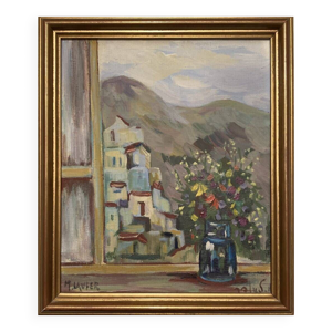Bouquet/paysage, double peinture réversible signé A. Viret