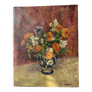 Bouquet, toile ancienne signée Rouban