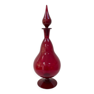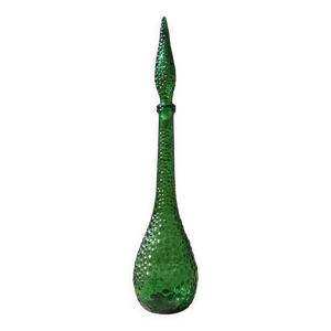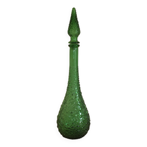 Bouteille carafe génie en verre d'Empoli vert vintage années 70s
