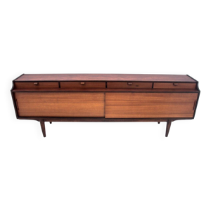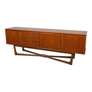Buffet du milieu du siècle J.D. Freese avec clapet et verre opalin noir.