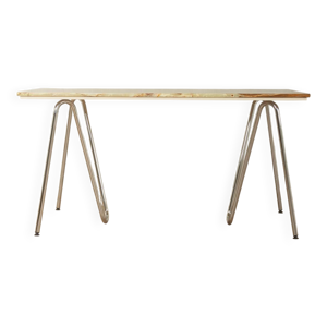 Bureau à trépieds des années 1980 laqué vert avec fauteuil de velours noir