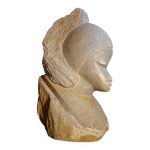 Buste en pierre limoneuse d’après Coysevox, portrait de la duchesse de Bourgogne