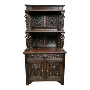 Cabinet de style Renaissance en chêne massif à décor de chimères et cariatides