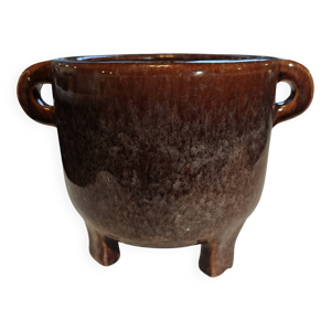 Cache pot céramique ''tachiste'', signé La Poterie du colombier, la colombe, années 70