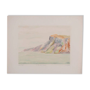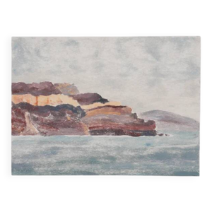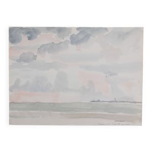 Camille COMBE : Promenade marine, Aquarelle originale signée