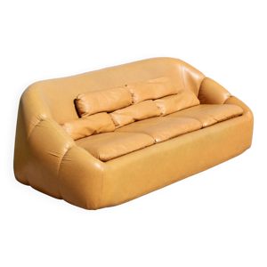 Canapé 2 places en cuir noir vintage ann 70 Edelhard Harlis– 180 cm