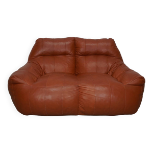 Canapé 2 places & pouf, steiner faubourg cuir rouge